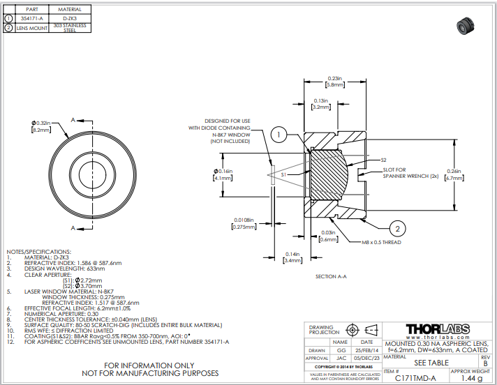 Thorlabs索雷博     C171TMD-A   非球面透镜