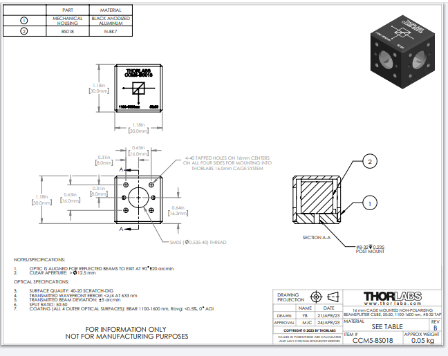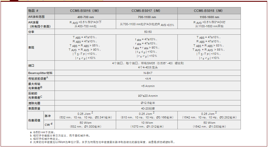 Thorlabs索雷博     CCM5-BS018 - 非偏振分束器