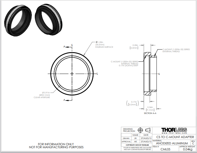 Thorlabs索雷博 CML05 - CS-Mount转C-Mount延长转接件