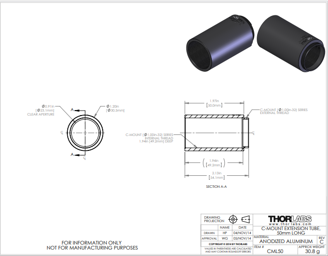 Thorlabs索雷博 CML50 - C-Mount延长管