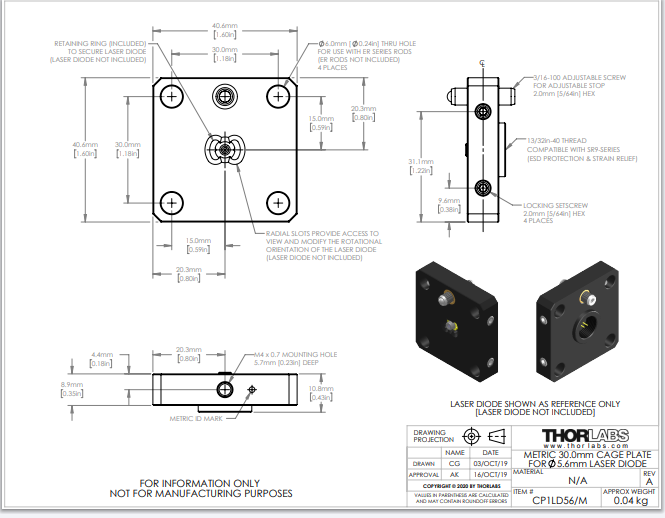 Thorlabs索雷博 CP1LD56/M - 30 mm笼板安装座