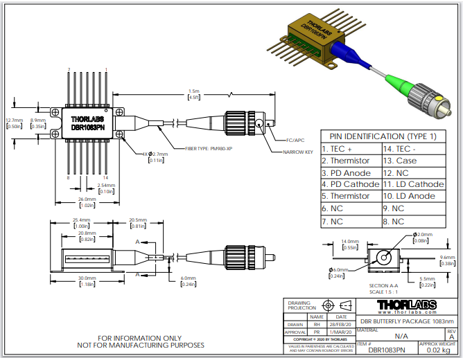 Thorlabs索雷博     DBR1083PN - 分布式布拉格反射激光器