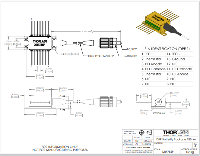 Thorlabs索雷博 DBR785P - 分布式布拉格反射激光器