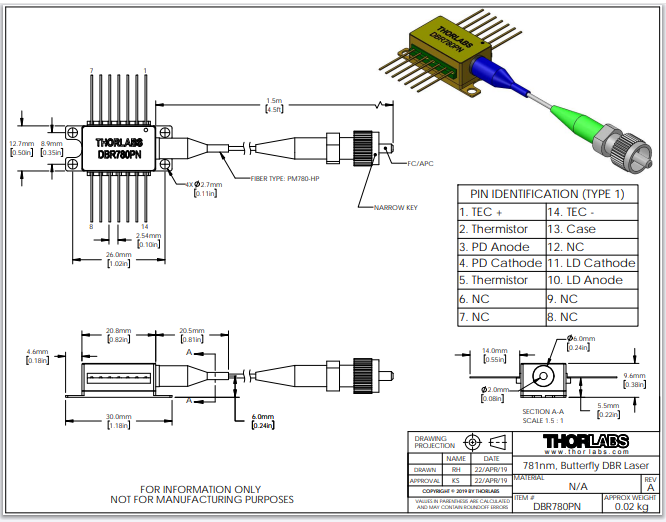Thorlabs索雷博 DBR780PN - 分布式布拉格反射激光器