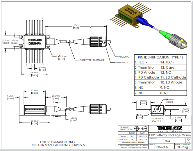 Thorlabs索雷博 DBR760PN - 分布式布拉格反射激光器
