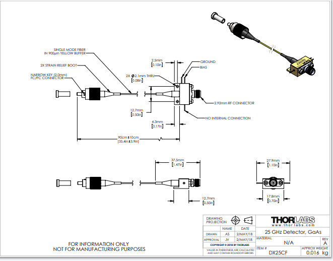 Thorlabs索雷博 DX25CF - 超快探测器模块
