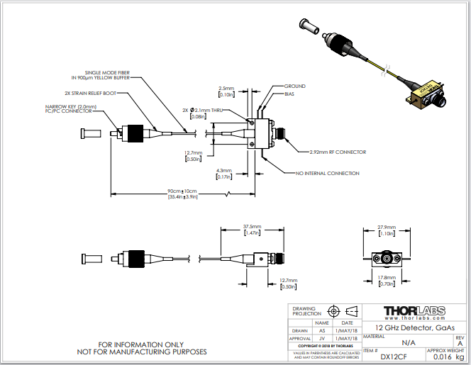 Thorlabs索雷博 DX12CF - 超快探测器模块