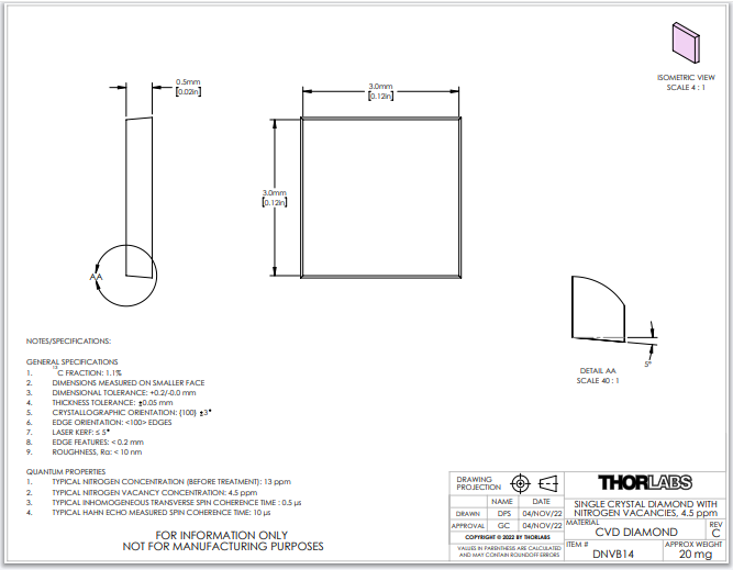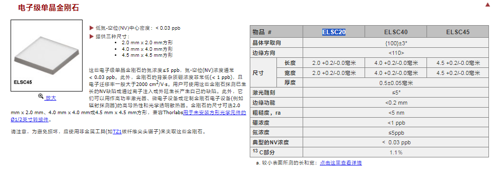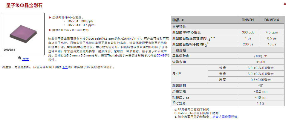 Thorlabs索雷博 DNVB14 - 单晶金刚石