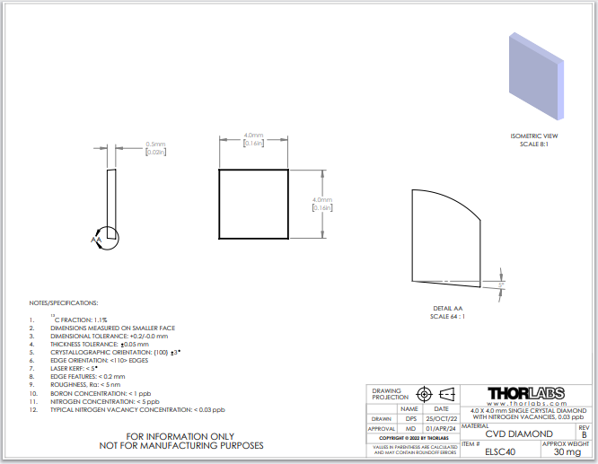 Thorlabs索雷博 ELSC40 - 单晶金刚石