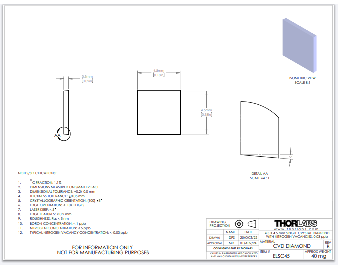 Thorlabs索雷博 ELSC45 - 单晶金刚石