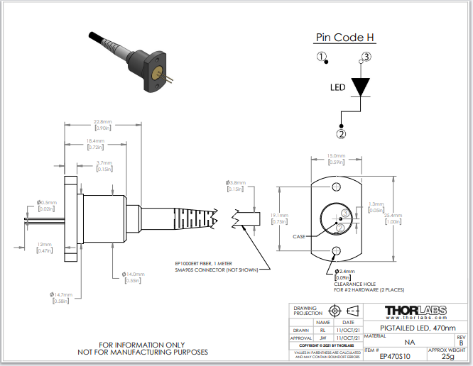 Thorlabs索雷博 EP470S10 - 带尾纤的LED