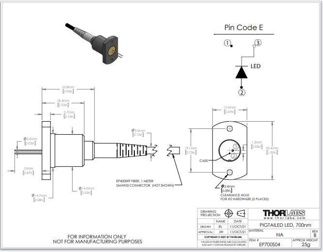 Thorlabs索雷博 EP700S04 - 带尾纤的LED