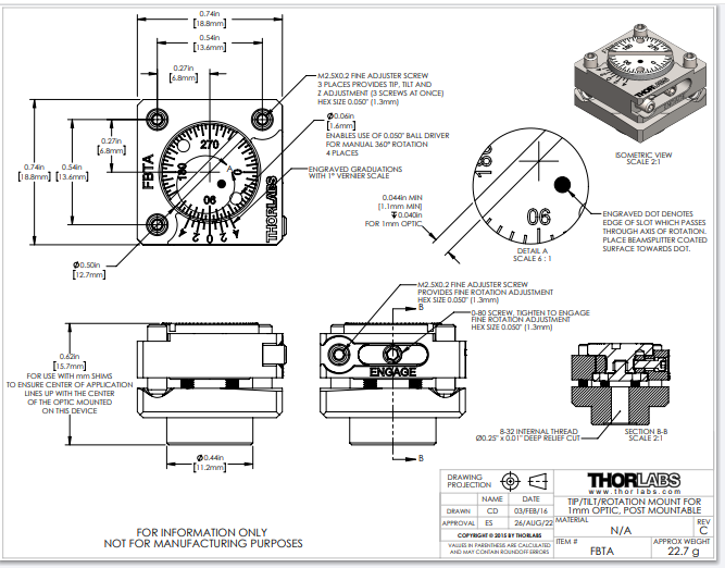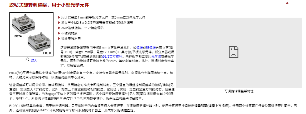 Thorlabs索雷博 FBTA - 旋转调整架