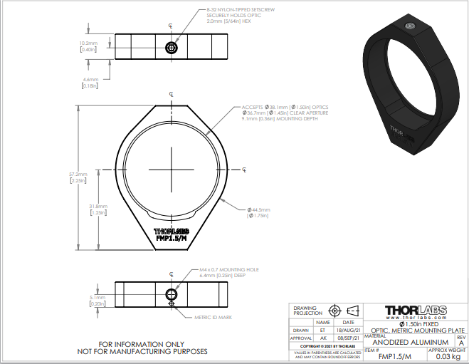 Thorlabs索雷博 FMP1.5/M - 固定式安装座