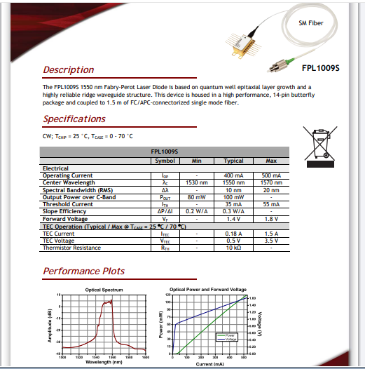 Thorlabs索雷博 FPL1009S - 激光二极管
