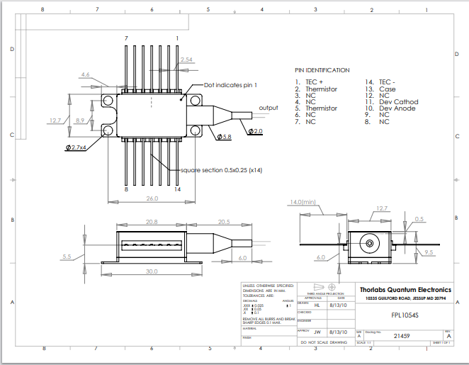Thorlabs索雷博 FPL1054S - 激光二极管