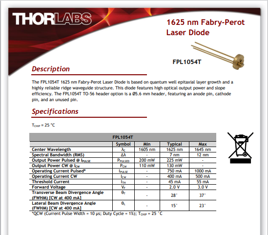 Thorlabs索雷博 FPL1054T - 激光二极管