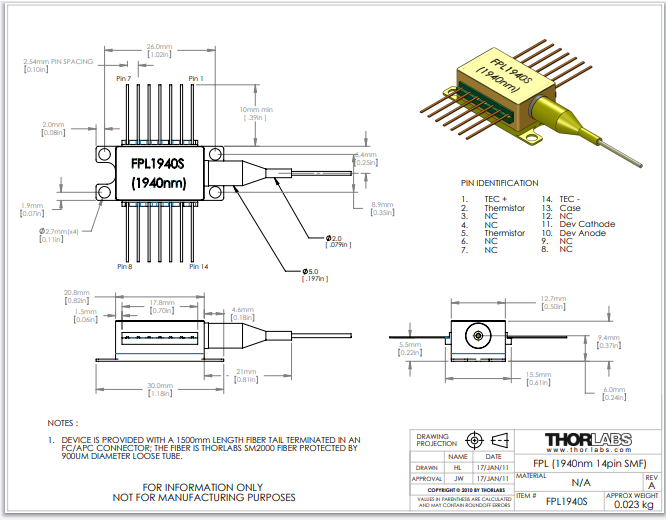 Thorlabs索雷博     FPL1940S - 激光二极管