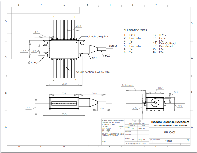 Thorlabs索雷博 FPL2000S - 激光二极管