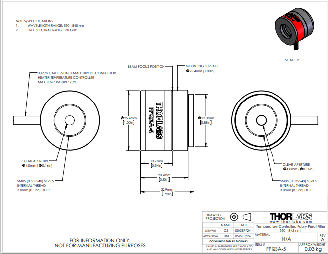 Thorlabs索雷博 FPQSA-5 - 法布里-珀罗滤光器