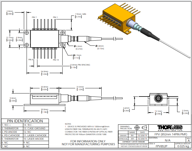 Thorlabs索雷博     FPV852P - 单频激光二极管