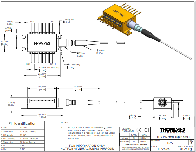 Thorlabs索雷博 FPV976S - 单频激光二极管