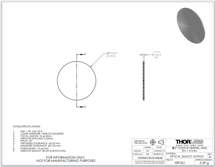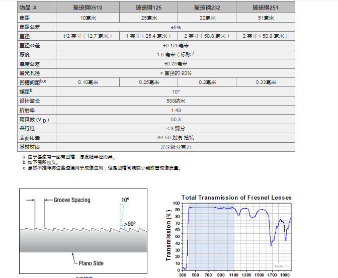 Thorlabs索雷博 FRP251 菲涅尔透镜