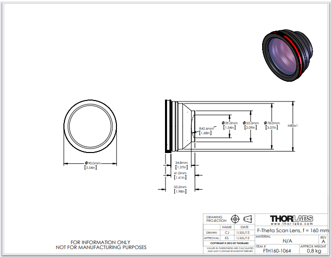 Thorlabs索雷博 FTH160-1064 - F-Theta扫描透镜