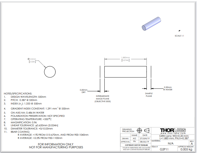 Thorlabs索雷博 G2P11 - GRIN透镜