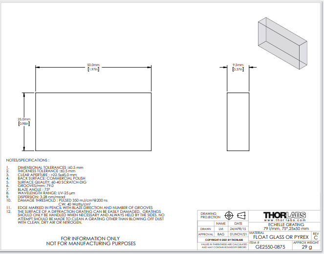 Thorlabs索雷博 GE2550-0875 - 阶梯光栅