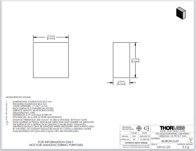 Thorlabs索雷博 GH13-12V - 可见反射式全息光栅