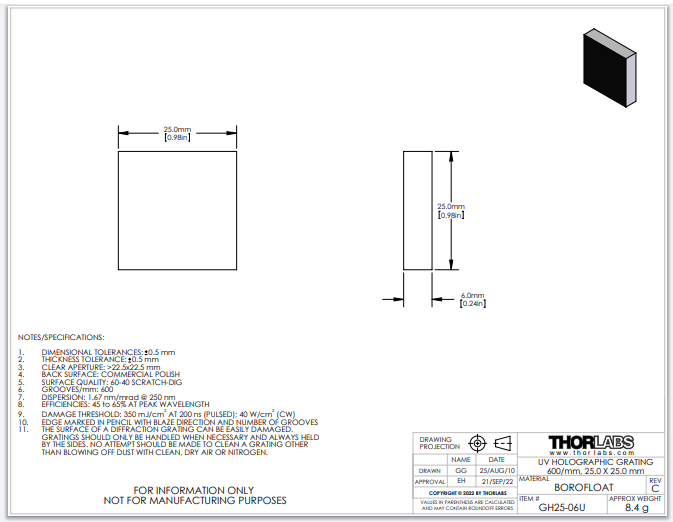 Thorlabs索雷博 GH25-06U - UV反射式全息光栅