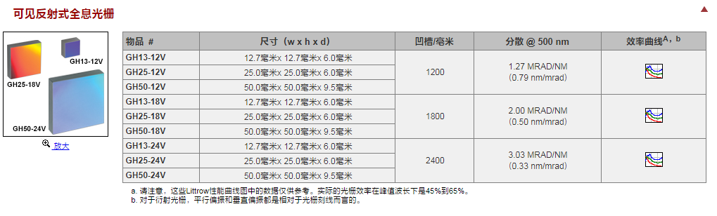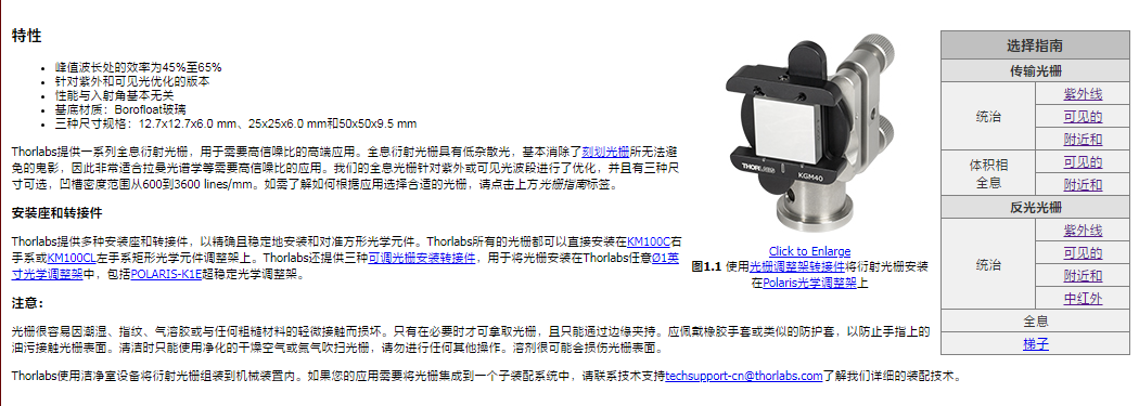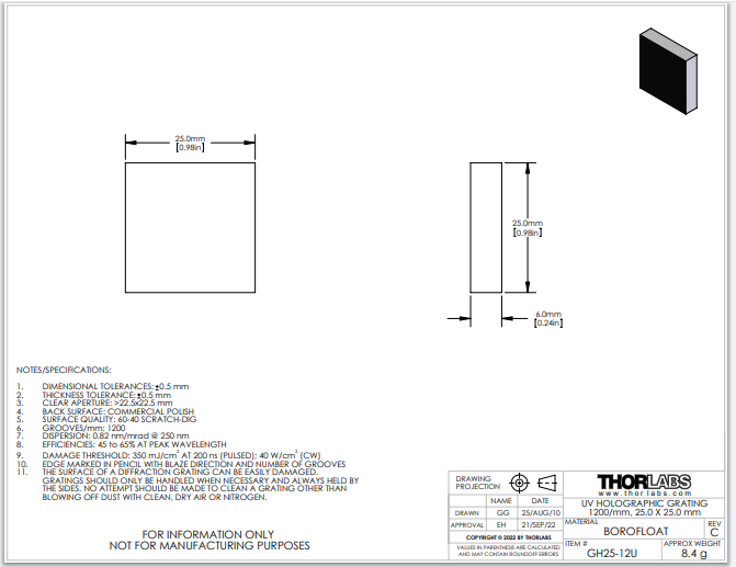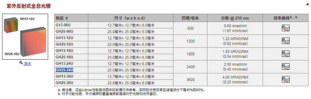 Thorlabs索雷博 GH25-12U - UV反射式全息光栅