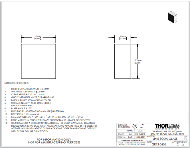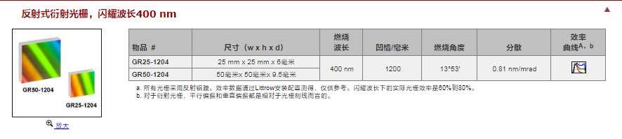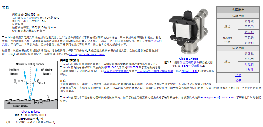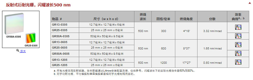 Thorlabs索雷博     GR13-0605 - 刻划衍射光栅