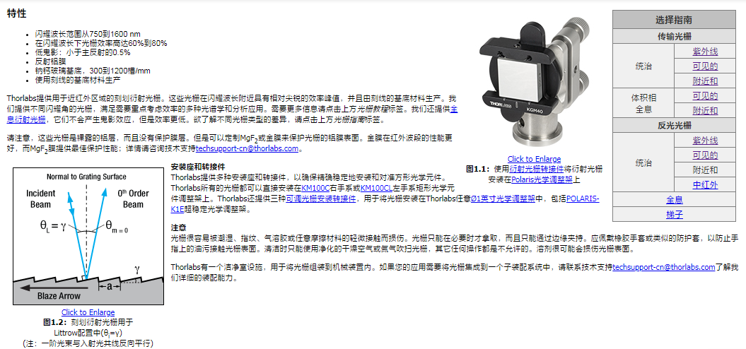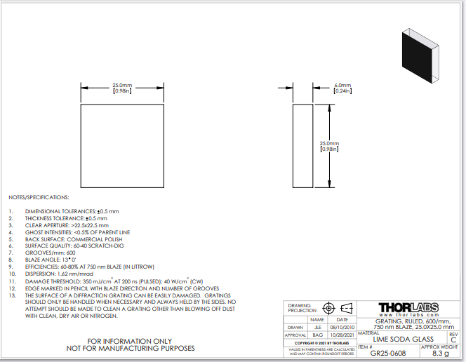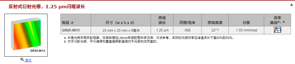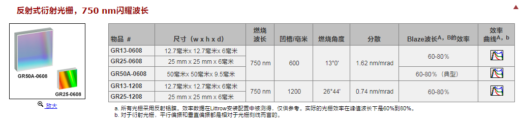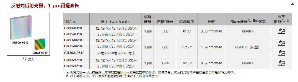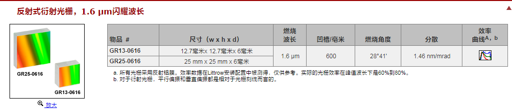 Thorlabs索雷博     GR25-0608 - 刻划衍射光栅