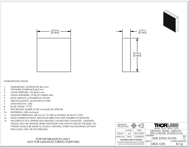 Thorlabs索雷博 GR25-1205 - 刻划衍射光栅
