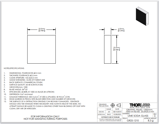Thorlabs索雷博 GR25-1210 - 刻划衍射光栅