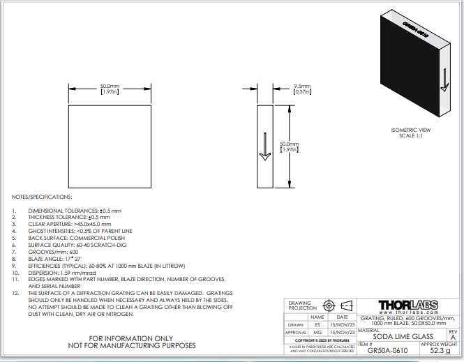 Thorlabs索雷博 GR50A-0610 - 刻划衍射光栅