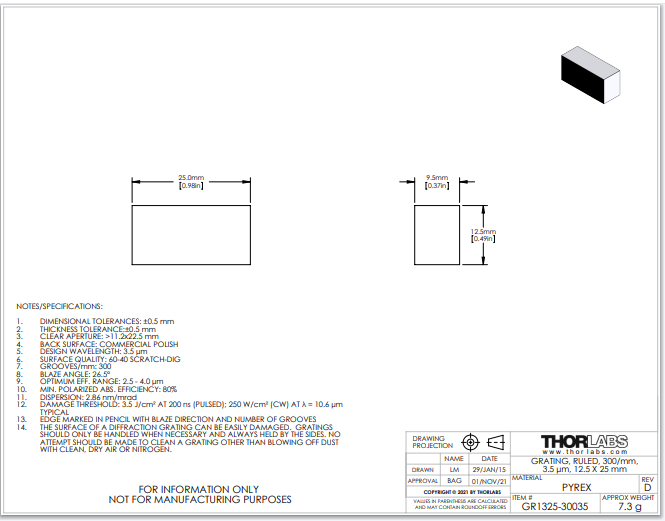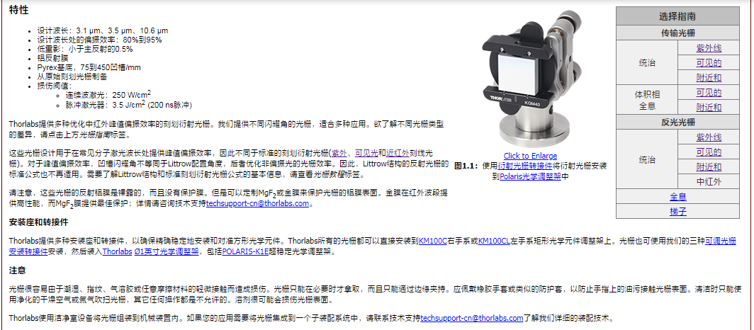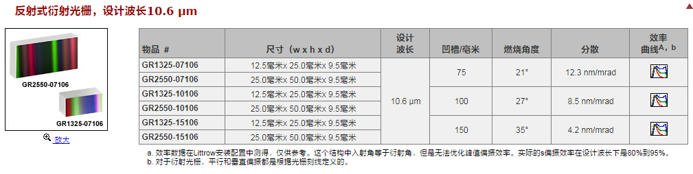 Thorlabs索雷博 GR1325-30035 - 反射式刻线衍射光栅