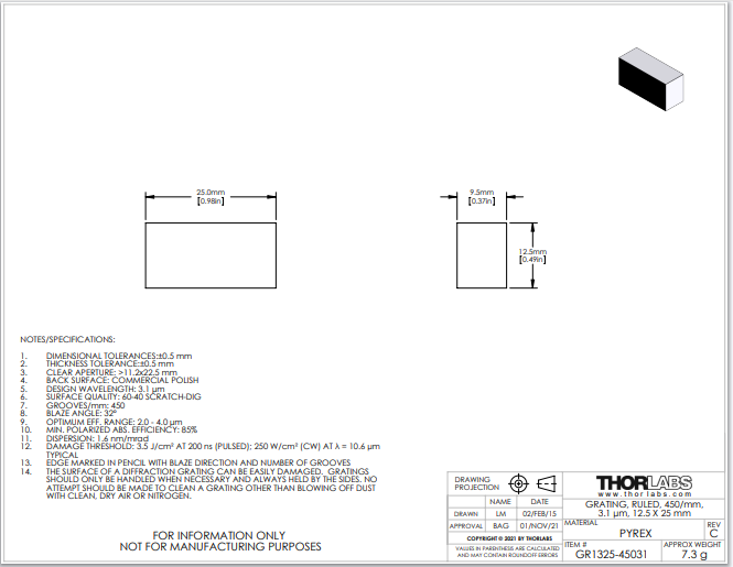 Thorlabs索雷博 GR1325-45031 - 反射式刻线衍射光栅
