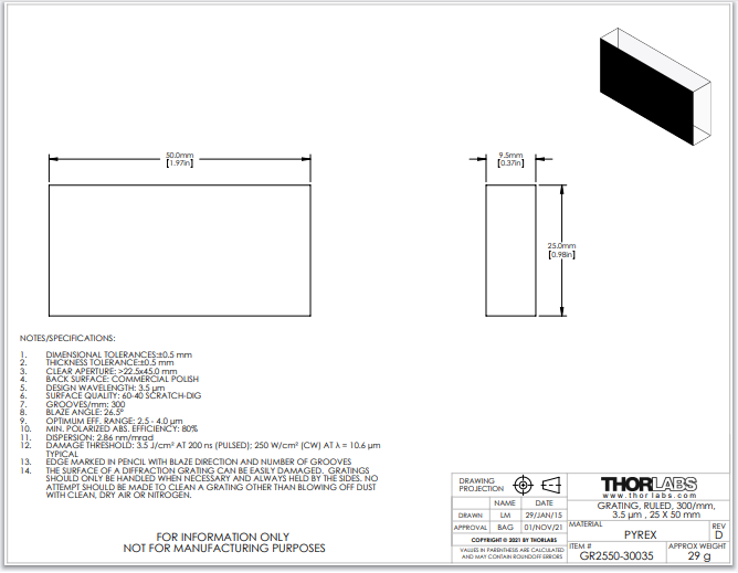 Thorlabs索雷博 GR2550-30035 - 反射式刻线衍射光栅
