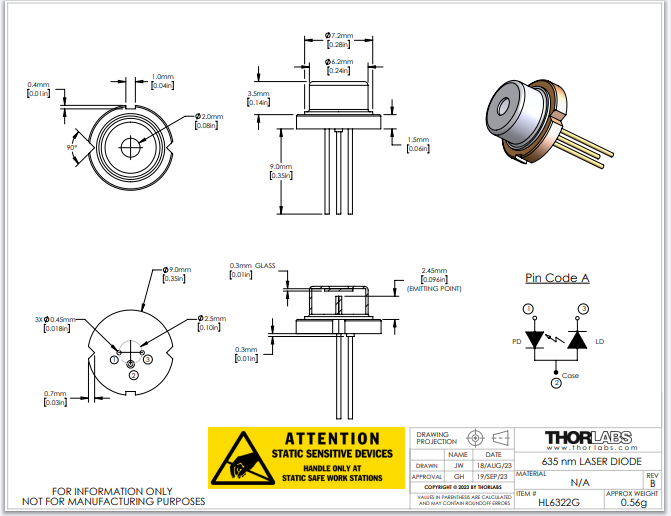 Thorlabs索雷博 HL6322G - 激光二极管