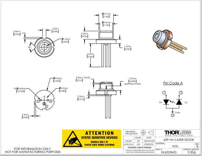 Thorlabs索雷博 HL6323MG - 激光二极管