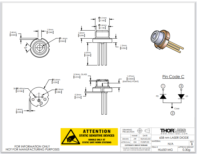 Thorlabs索雷博 HL6501MG - 激光二极管