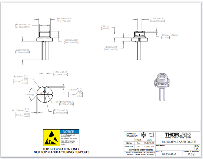 Thorlabs索雷博 HL6544FM - 激光二极管