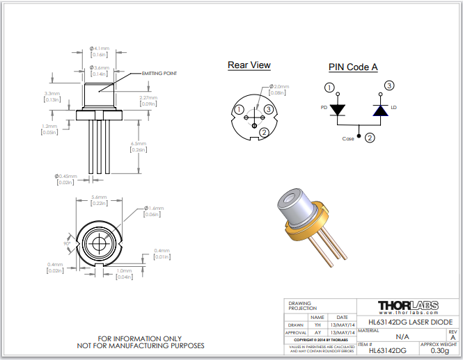 Thorlabs索雷博 HL63142DG - 激光二极管