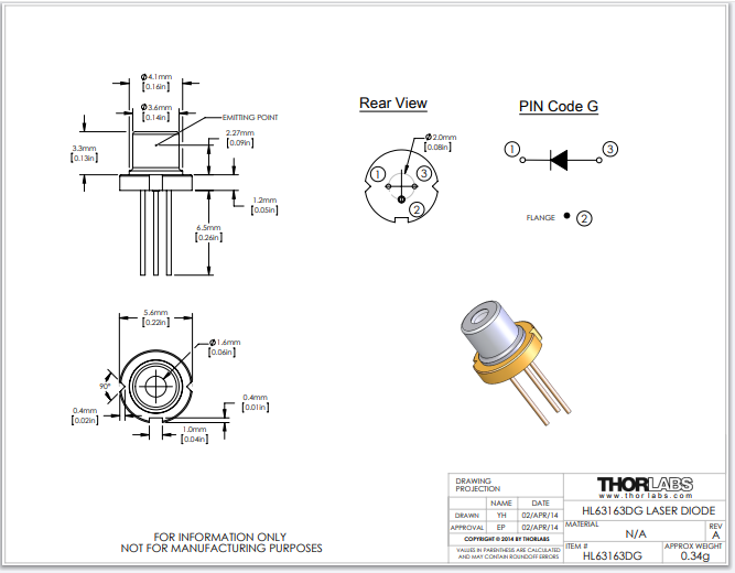 Thorlabs索雷博     HL63163DG - 激光二极管