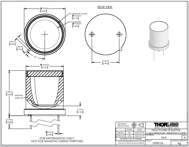 Thorlabs索雷博     HPIR104 - 高功率红外发射器
