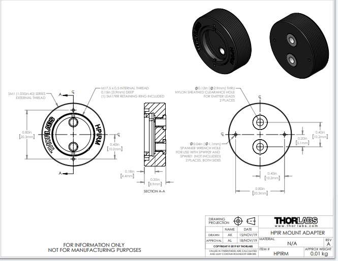 Thorlabs索雷博 HPIRM - SM1螺纹安装转接件