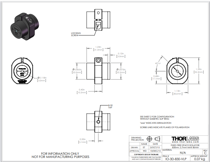 Thorlabs索雷博 IO-3D-830-VLP - 自由空间隔离器